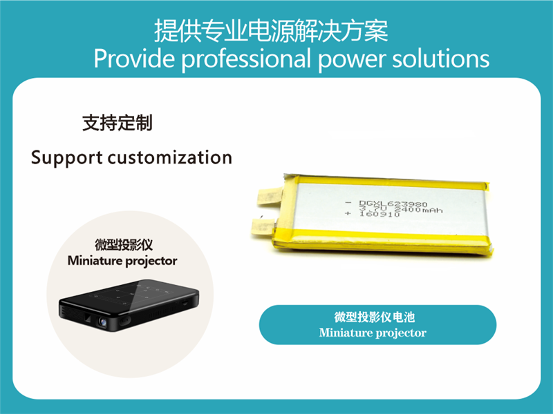 Mini projectors make the traditional huge projectors compact, portable, miniaturized, entertaining, and practical, making projection technology closer to life and entertainment. The market for mini projectors is growing, and the core accessory lithium battery is the industry Play a great role in promoting, our company‘s micro-projector battery has long battery life, light and thin, can be assembled in any shell, with high-standard safety protection performance and good charge and discharge performance as the priority. (According to the specifications and characteristics of the projector and customer requirements, the high-end projector battery pack that matches the host can be designed)